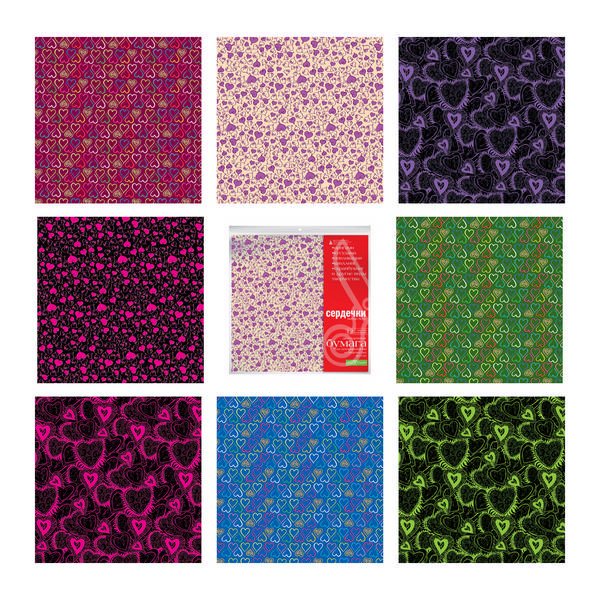 Бумага цветная для декорирования А4+ (290*290мм) 12л "Сердечки" набор№12 2-056/12 Hobby Time