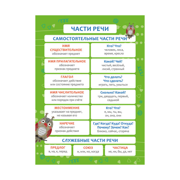 Плакат обучающий "Части речи" А3, 290*400мм 57812001 Феникс+