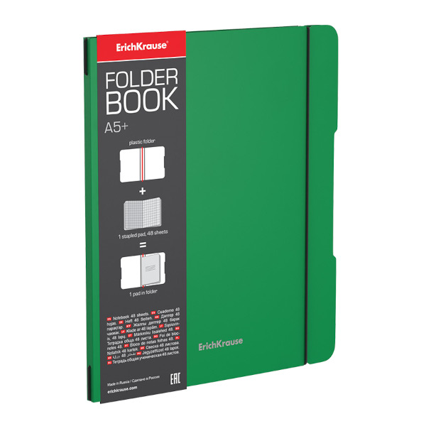 Тетрадь 48л А5+ клетка "FolderBook Classic" съем. пластик, зеленый 48018 Erich Krause