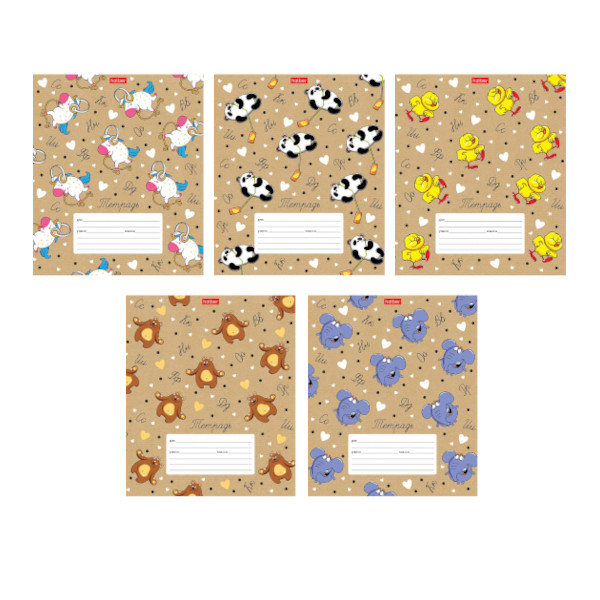 Тетрадь 12л А5 линейка "Забавные зверушки" картон, ассорти 12Т5В2 Hatber