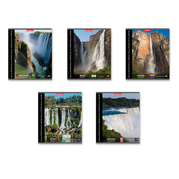 Тетрадь 48л А5+ клетка "Энциклопедия. Водопады" картон, ассорти 47531 Erich Krause