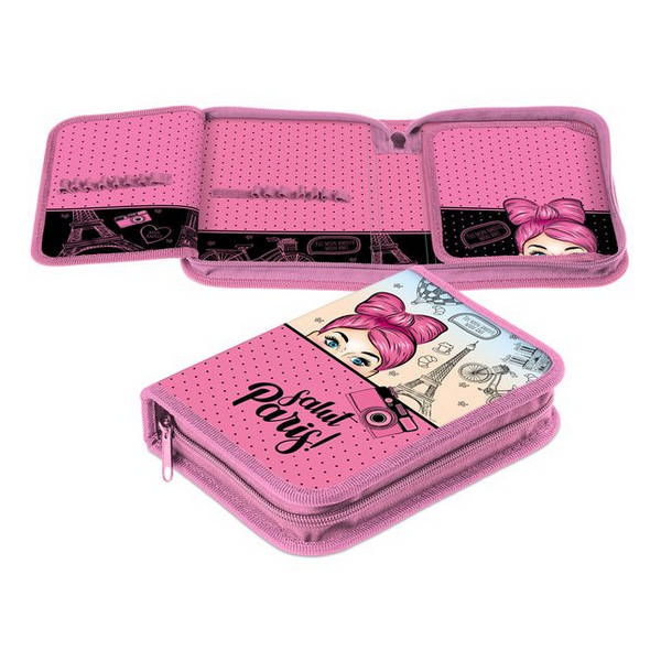 Пенал Хатбер "Привет Париж!" 1отд.,без нап 20*14см,на молнии c 2 откид. план. ткань/картон Npk_27152