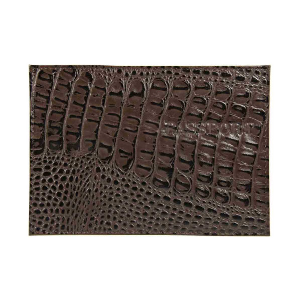 Обложка для паспорта "PASSPORT" нат.кожа, тиснение, темно-коричневый 1,03гр-КРОКО-222 Imige