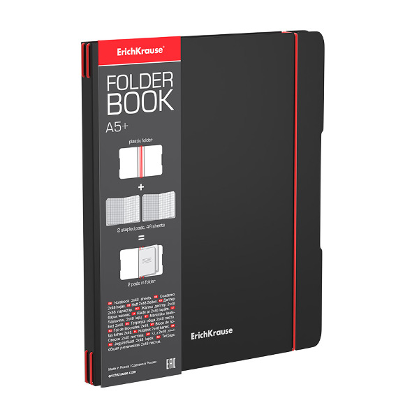 Тетрадь 48л*2 А5+ клетка "FolderBook Accet" съем. пластик, черный/красн. 51435 ErichKrau