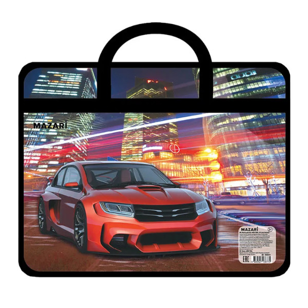 Папка с ручками А4 1отд., пластик, молния "Red" M-16901 MAZARI ТМ