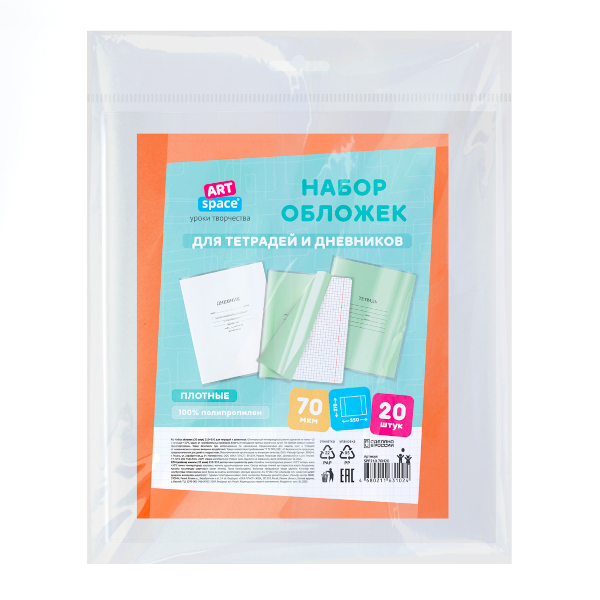 Набор обложек 210*350мм для тетради и дневника, полипропилен, 70мкм SPP210.70Н20 ArtSpace (20шт)