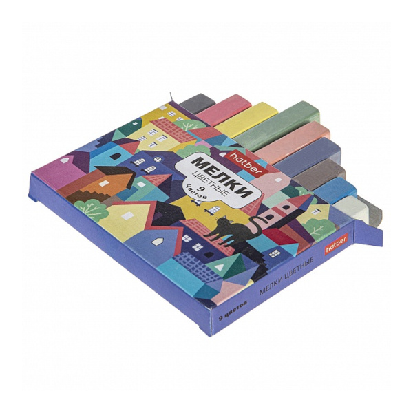 Мел цветной 9цв/9шт "Городок" квадратный, карт.уп. ML_072697 Hatber