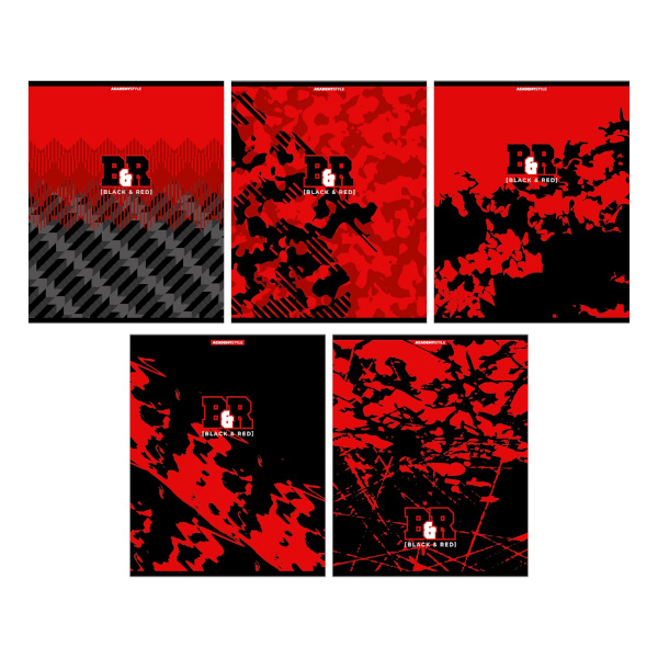 Тетрадь 48л А5 клетка "Black & Red" картон, ассорти 14101/5 Academy style