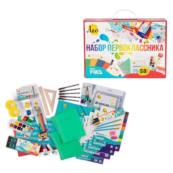 Набор Лео для ПЕРВОКЛАССНИКА А4 "ШколаСад" в подар. уп. 58 предм. LNGIS-01