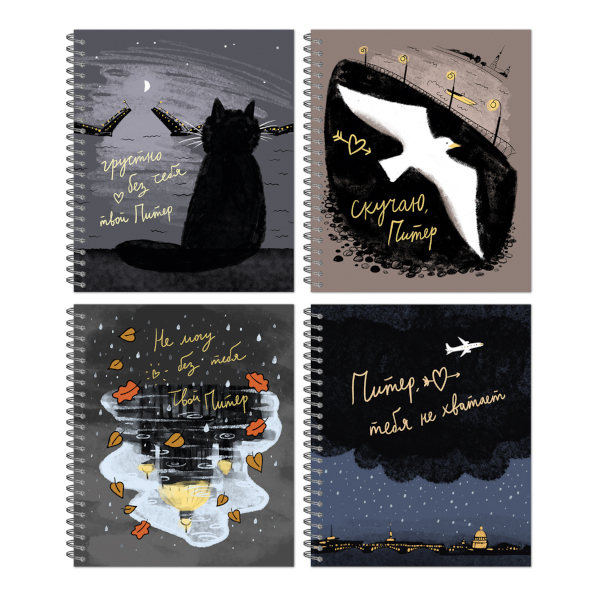 Тетрадь 48л А5 клетка/гребень "Питер я скучаю" картон, ассорти 3367-48 Полином