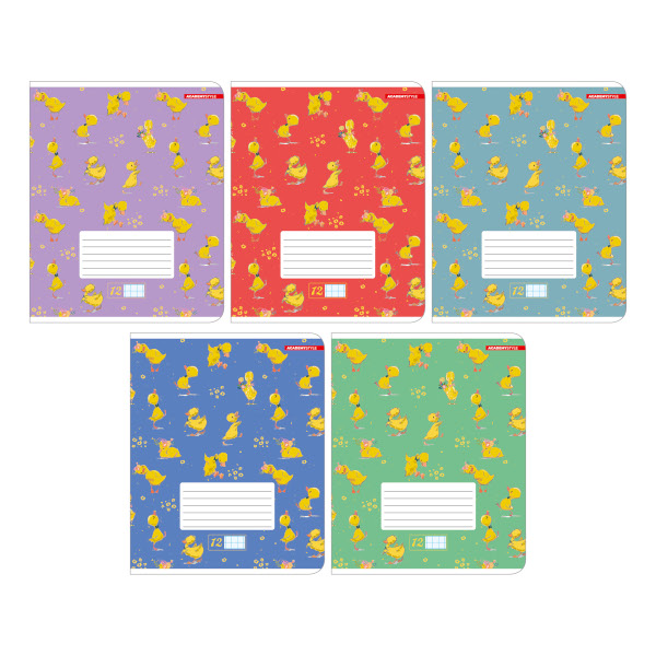 Тетрадь 12л А5 клетка "Забавные утята" картон, ассорти 14329/5 Academy style