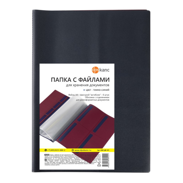 Папка с файлами для документов А4+, ПВХ, т.-синяя 2981.ДВ-101 ДПС