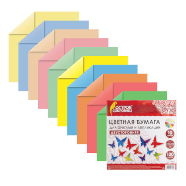 Бумага цветная для оригами 210*210мм 10л*10цв 111947 Остров сокровищ