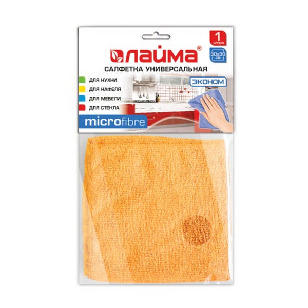 Салфетки для уборки универсальные "ЛАЙМА" 30*30см микрофибра, оранж 601242