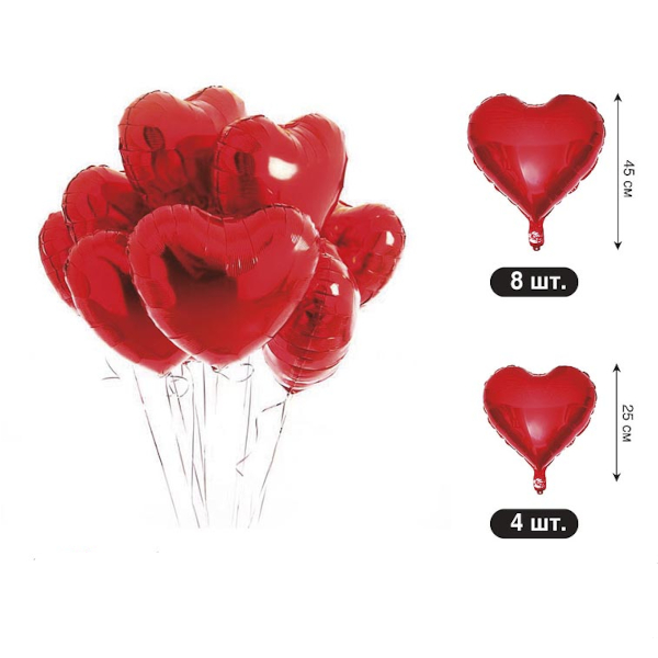 Набор шаров "Сердца" 12шт (4-45см, 4-25см, +5м веревка) красный 0994.897 Арт Дизайн