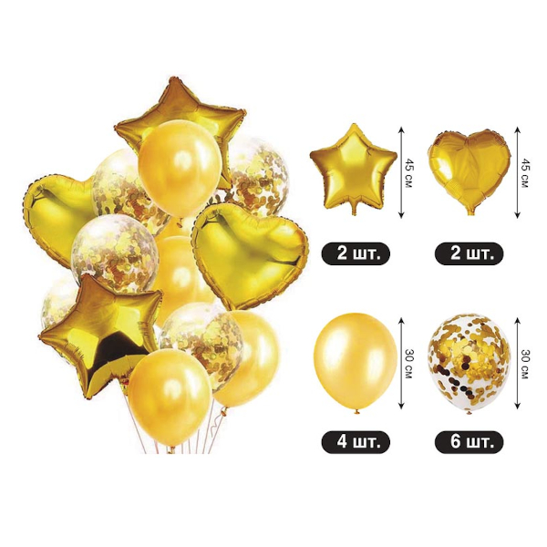 Набор шаров "Золото" 14шт (4фольга+10латекс+5м веревка) 0994.895 Арт Дизайн