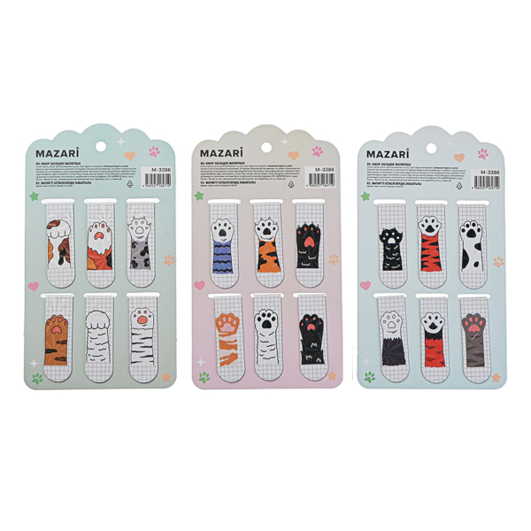 Набор закладок для книг магнит. "Лапки" 6шт, ассорти M-3386 MAZARI ТМ