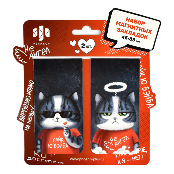 Набор закладок для книг магнит. "Аниме кот" 45*89мм, 2шт 63658 Феникс+