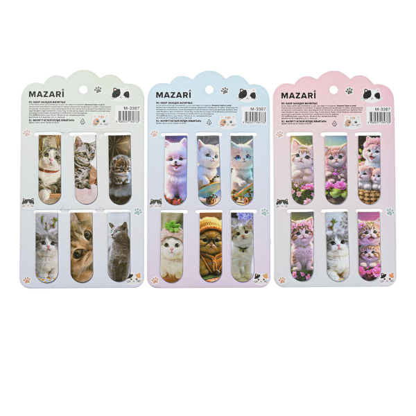 Набор закладок для книг магнит. "Котики" 6шт, ассорти M-3387 MAZARI ТМ