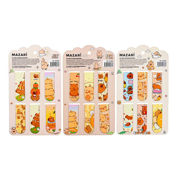Набор закладок для книг магнит. "Капибара" 6шт, ассорти M-3390 MAZARI ТМ