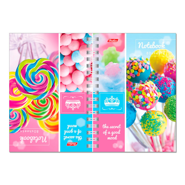 Записная книга А6 80л "Карамель" клетка, гребень, тв.обл., картон, переверт 80ЗКтд6В1гр_16277 Hatber