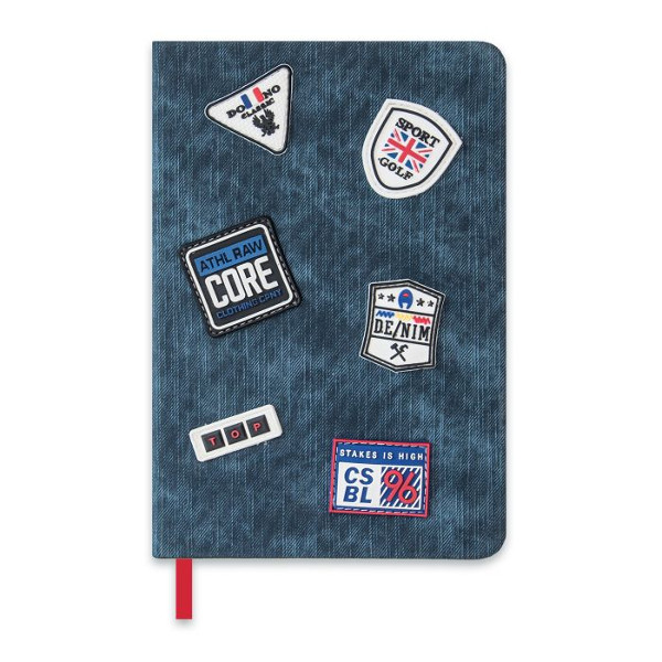 Записная книга А5 192л "Джинс" клетка, сшивка, тв.обл., ткань, синий 47679 Феникс+