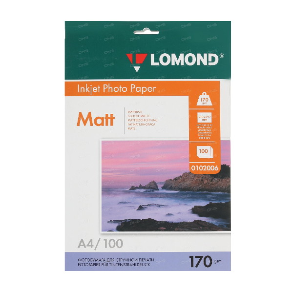 Бумага А4 Lomond д/стр.пр. 170г/м2, матовая, двухсторонняя 0102006 (1лист)