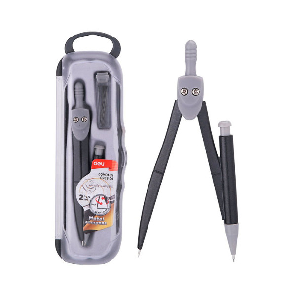 Доп. описание: Циркуль Deli металл в компл.: карандаш мех., черный/серый. Набор состоит из цинкового металлического циркуля с механическим карандашом и сменными графитными грифелями. Максимальный диаметр окружности 30 см. набор упакован в пластиковый пенал. Размер упаковки: 170*50*20 мм.