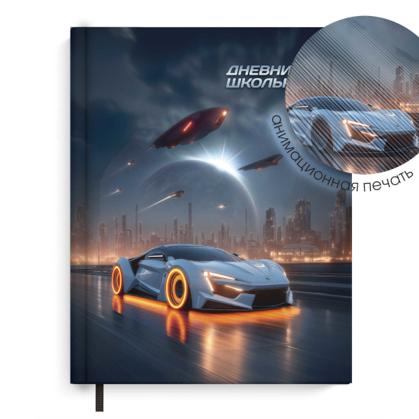 Доп. описание: Дневник школьный арт. 72562 / 15 МАШИНА БУДУЩЕГО (7БЦ: А5+; твёрдый переплёт 7БЦ, материал обложки: картон переплётный 950 г/м²; декор: аппликация с анимированным изображением, глянцевая ламинация; способ крепления блока: ниткошвейный, вн. блок: 48 л., белый офсет 80 г/м², печать в одну краску, справочный материал: универсальная шпаргалка; закладка: одно ляссе; форзац: печать в одну краску; индивидуальная упаковка: ПЭТ-пакет)