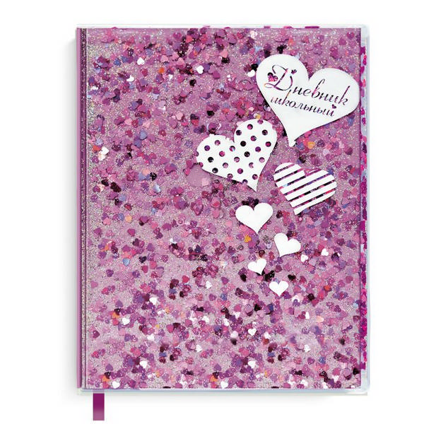 Дневник 1-11кл. мягк. обл. "Сердечки" ПВХ, внутри пайетки, глиттер 48675 Феникс+