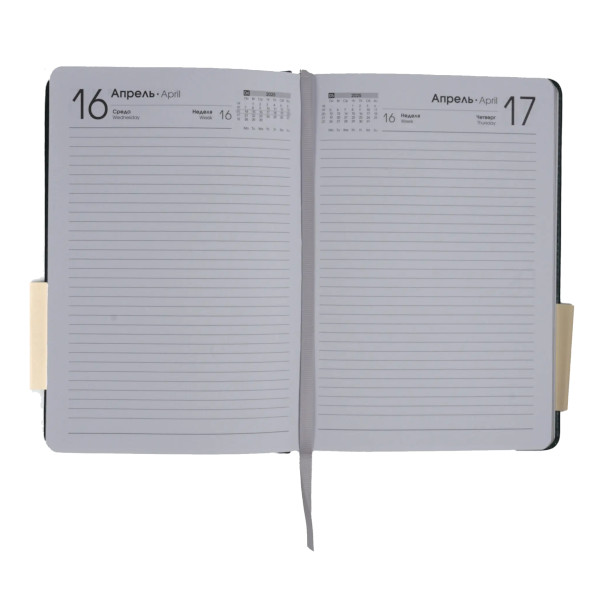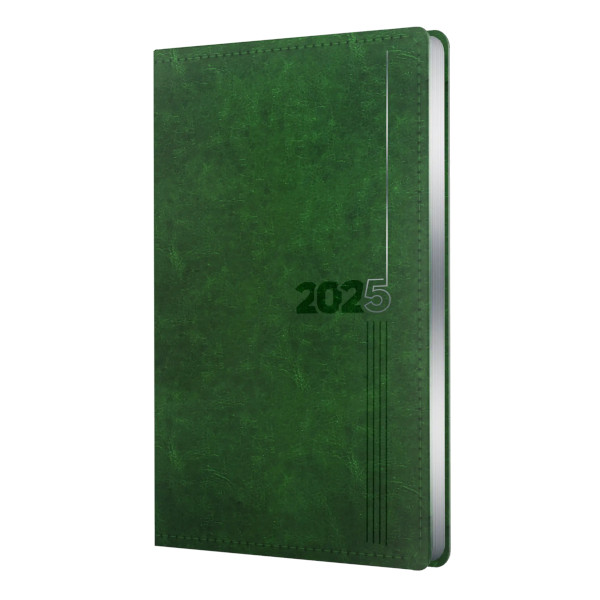 Доп. описание: Ежедневник формата А5, 145х211 мм, с твердой обложкой из искусственной кожи, в классическом зеленом цвете, станет верным спутником на весь 2025 год. Блок состоит из 176л и выполнен из высококачественного белого офсета, плотностью 80 г/м². Ежедневное планирование без разбивки по часам не ограничивает вас в объеме записей. Ставьте перед собой грандиозные цели, разбивайте их на этапы и отмечайте их выполнение. С помощью закладки Вы быстро найдете важную информацию или откроете нужную страницу. Серебряный обрез придает ежедневнику благородство и статусность.
