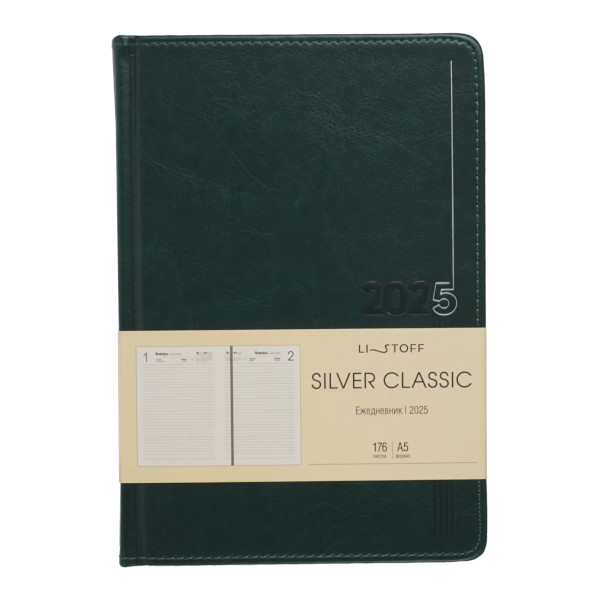 Ежедневник А5 2025г Listoff "Silver Classic" тв.обл., иск.кожа, сшивка, зеленый ЕКСФ52517603