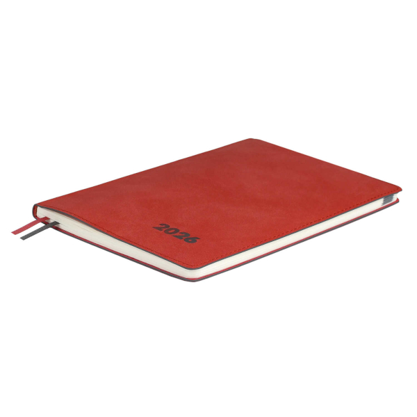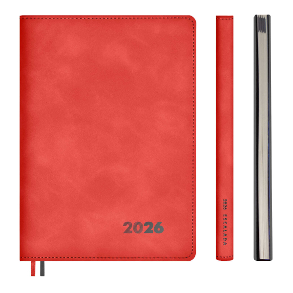 Еженедельник А6+ 2026 Escalada "Наппа" тв.обл., иск.кожа, сшивка, красный 70367