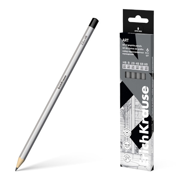 Карандаши ч/гр 6шт Erich Krause "Art" (HB,B,2B,4B,6B,8B) 6-гран., без ласт. 56080