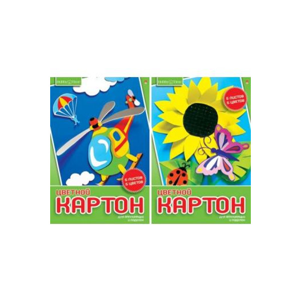 Картон немелованный А4 5л/5цв "ХОББИ ТАЙМ" 2 вида 11-405-240 Hobby Time