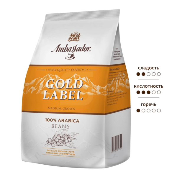 Кофе "Ambassador. Gold Label" в зернах, 1000гр, пакет ШРфн69506