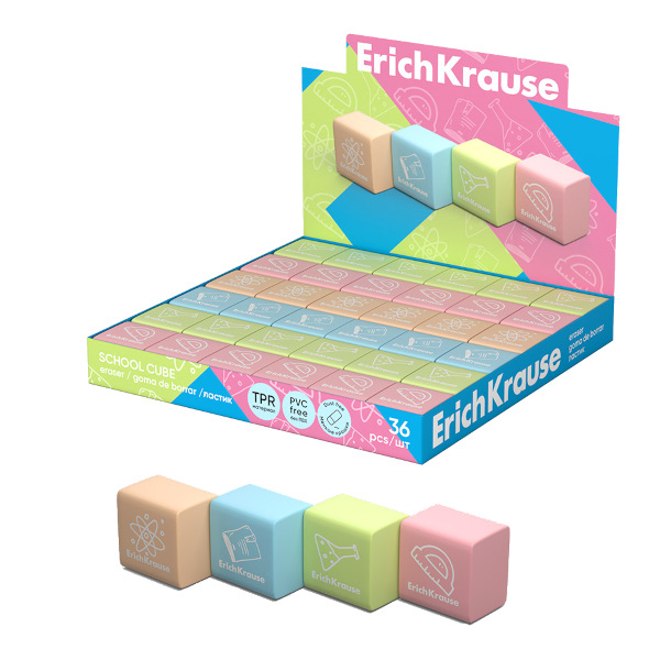 Ластик Erich Krause "School cube" квадрат 22*22*17мм, термопласт. резина, ассорти 60771