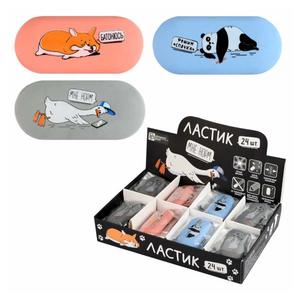 Ластик Феникс+ "Герои с характером" овал 60*28*12мм, термопласт.резина, ассорти 70038