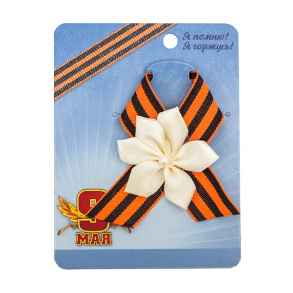 Лента георгиевская "9 Мая" с белым цветком 2676923 Micio