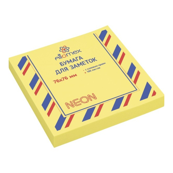 Доп. описание: Клейкая бумага для заметок "Attomex" 76x76 мм, 100 листов, офсет 75 г/м², цвет неоновый желтый.