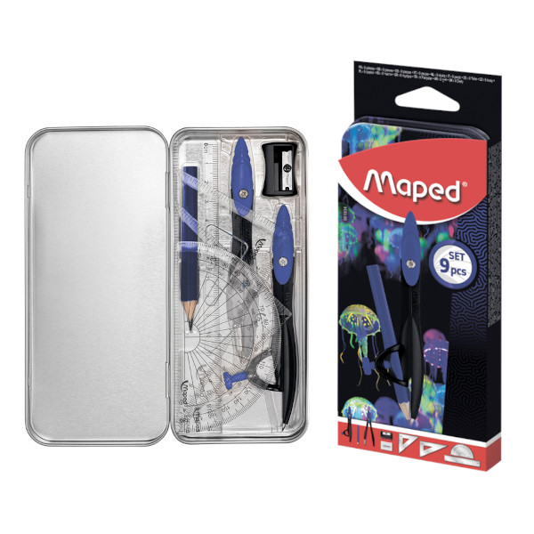 Набор для черчения Maped "DeepSea" 9 предм., метал. циркуль 120мм, метал. футляр, черн/син 981834.