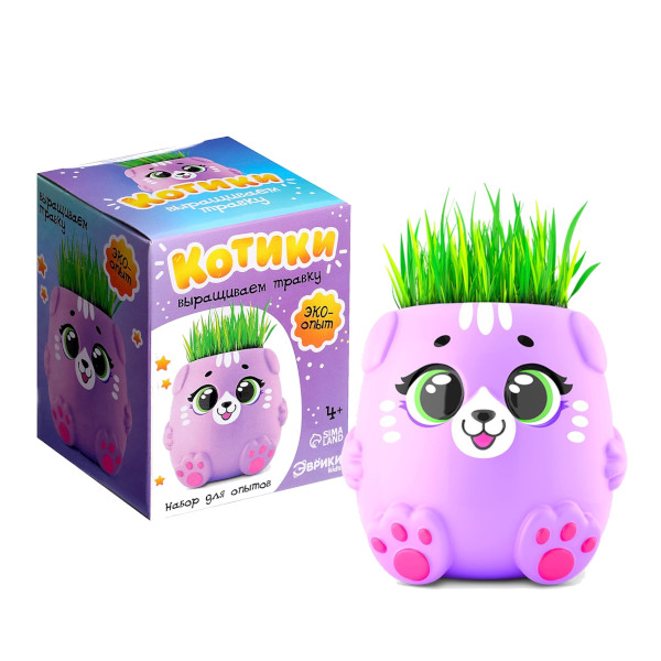 Набор для творчества Эврики Выращивание травки "Котики. Фиолетовый" 9415586