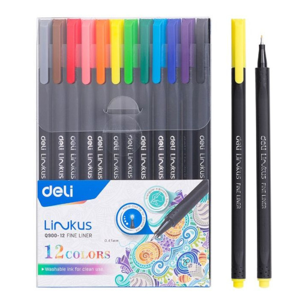 Набор капиллярных ручек Deli "Linkus" 12цв., круглая, пласт.корп., 0,45мм EQ900-12