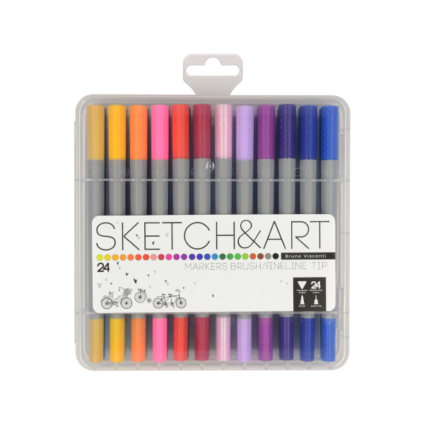 Набор маркеров Bruno Visconti ""SKETCH&ART" (КИСТОЧКА + ЛИНЕР) 24цв, двусторон., 22-0083
