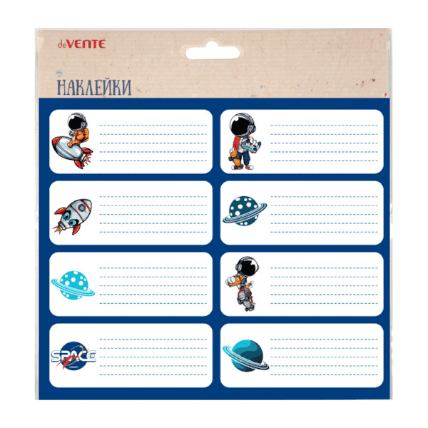 Доп. описание: Набор наклеек для тетрадей "deVENTE. Astronaut" 40x96 мм, 8 шт, в пластиковом пакете с блистерным подвесом.