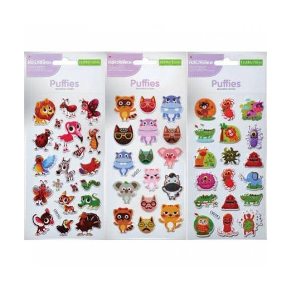 Наклейки объемные "Веселые зверушки - 1" 3 вида 2-151/01 Hobby Time