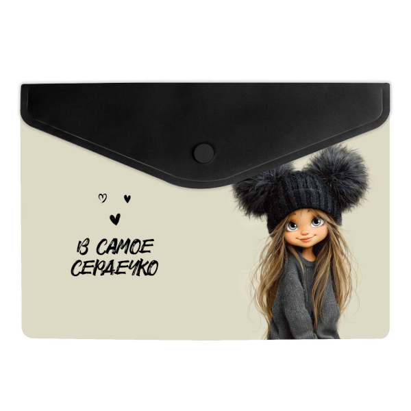 Папка-конверт на кнопке А5, 1отд., 180мкм, рисунок "Девчонка в шапке" 72378 Феникс+