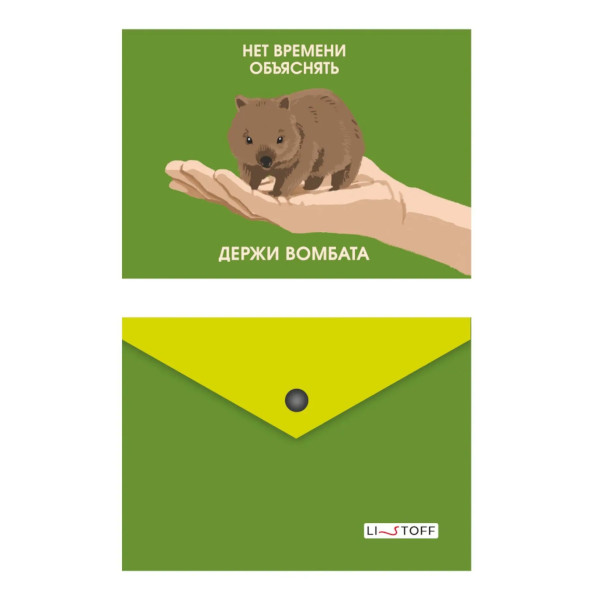 Папка-конверт на кнопке А6, 1отд., 180мкм, рисунок "Милые звери. Вомбат" ПКП60229 Listoff