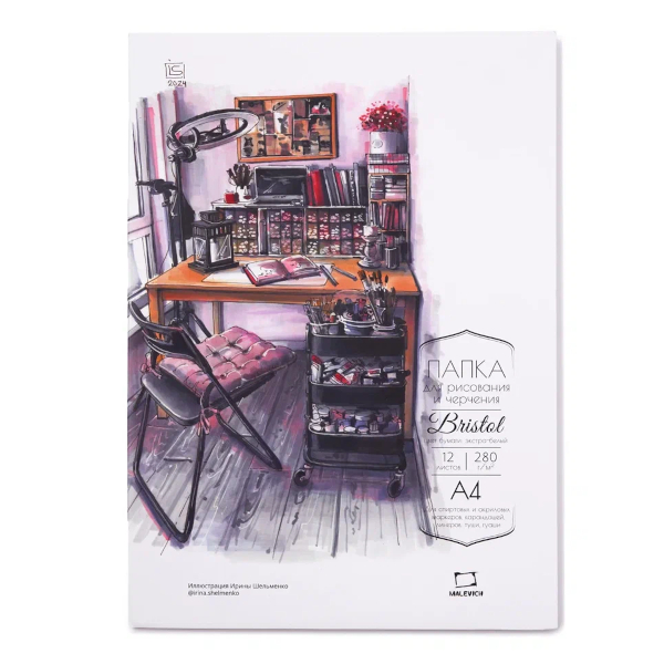 Папка для графики и маркеров А4 12л 280г/м2 "Bristol" 402668 Малевичъ