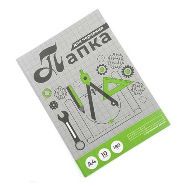 Папка с бумагой для черчения А4 10л 180г/м2, вертик/горизонт.рамка 313156 СБИ